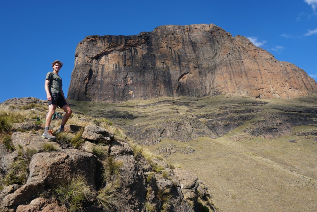 The first day of our adventure along the border of South Africa and Lesotho began with an unexpected van ride from the quaint Witsieshoek Mountain Lodge to the trailhead at the Sentinel Car Park. The night before we had attempted to reach the car park in an Uber from Johannesburg, only to get stuck in a large pothole on an unpaved road. After a substantial bit of work in the dark, we were able to free the poor driver’s car from the ditch and reverse it back to the pavement. Stranded and still a few miles from where we intended to camp, we set our course for the nearby lodge. Fortunately, once there, we were able to convince the exceptionally kind and motherly night manager to let us pitch our tents near the maintenance shed for just a few rand. In the morning, we would catch a shuttle to the trailhead with handful of other guests who had come to explore the Royal Natal National Park.