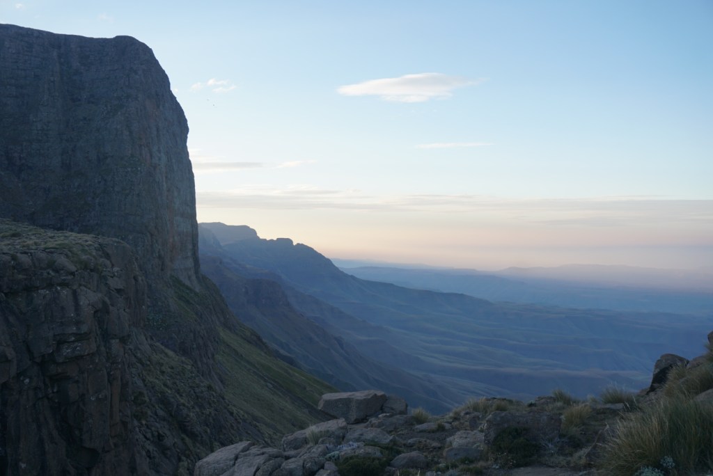 The rest of the day’s walking was expectedly difficult, but we did survive. Every time we passed evidence of Basotho micro-villages and huts, I would think back to the remarkable things we had learned in the cave the night before. As our own Dean Moriarty had put it, travelling through this part of Lesotho was truly like traveling back in time 500 years. Our final campsite at Injasuthi left much to be desired as it was uneven, rocky, and constantly exposed to what felt like hurricane force winds. Tired enough, we settled down nonetheless. I guess that is just the price you pay for 270 degree views and the ability to sleep steps from the edge of the world.