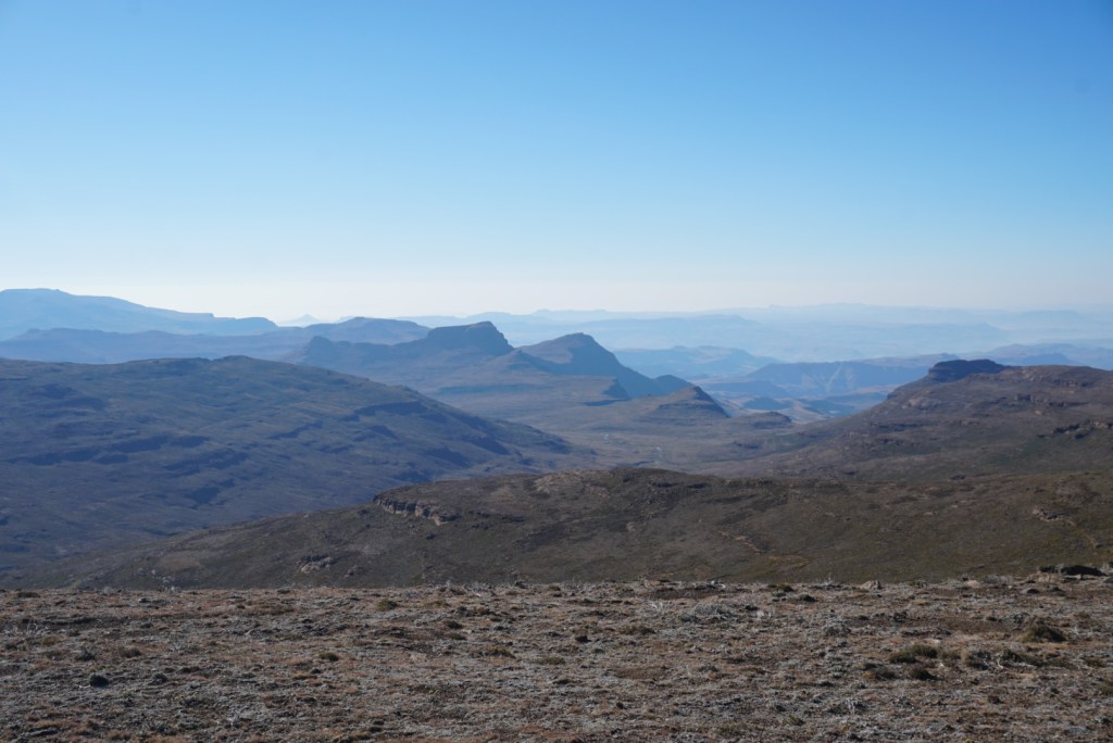 Today was slated to be a pretty brutal day, combining a long trek with a trip to the summit of the tallest peak in southern Africa, Thabana Ntlenyana at 14,424ft. (3,480m.) Since we had one day of slack built into our schedule, and were nearing the end of our journey, we decided to treat ourselves to some rest and recovery by splitting the day into two. It was a wonderful decision. Ben was dealing with some stomach issues likely related to our super-fiber diet of oatmeal, rice, and lentils, while the blistering on my feet was spreading despite the infection abating.