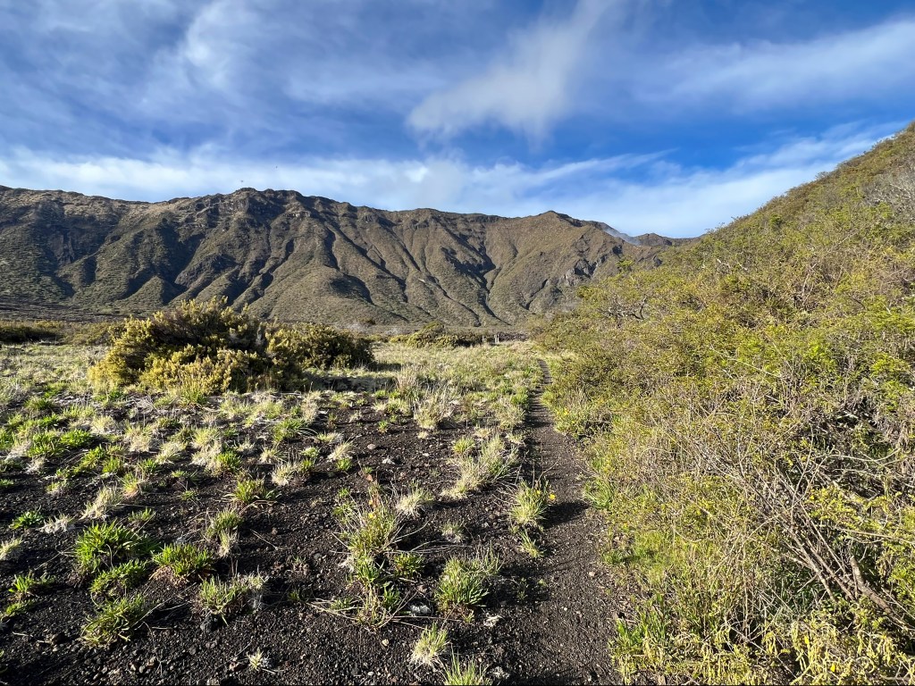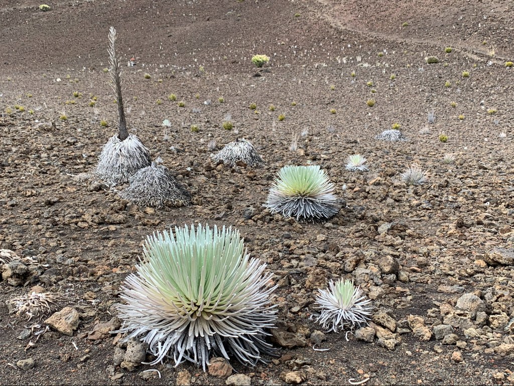 For those that have never seen a Hawaiian Silversword, they are a spectacular endemic plant evolved to survive in one of the harshest environments on earth. The endangered sub-species atop Haleakalā are only found on the volcano, generally growing in patches of green and silver rosettes where human or animal activity did not manage to wipe them out. As we descended deeper into the crater we could spot the dead and dry stalks of the select few plants that had bloomed earlier in the season. Silverswords may live up to 90 years and when their time comes, they go out with a final colorful display. A stalk covered in purple flowers suddenly emerges from the center of the plant and may rise as high as 6ft. before the whole plant dies and the seeds are left to scatter across the barren landscape. We had missed the bloom by a few months, but it provided a reason to return, just as our desire to sleep in the crater had driven us to back to the park this trip.